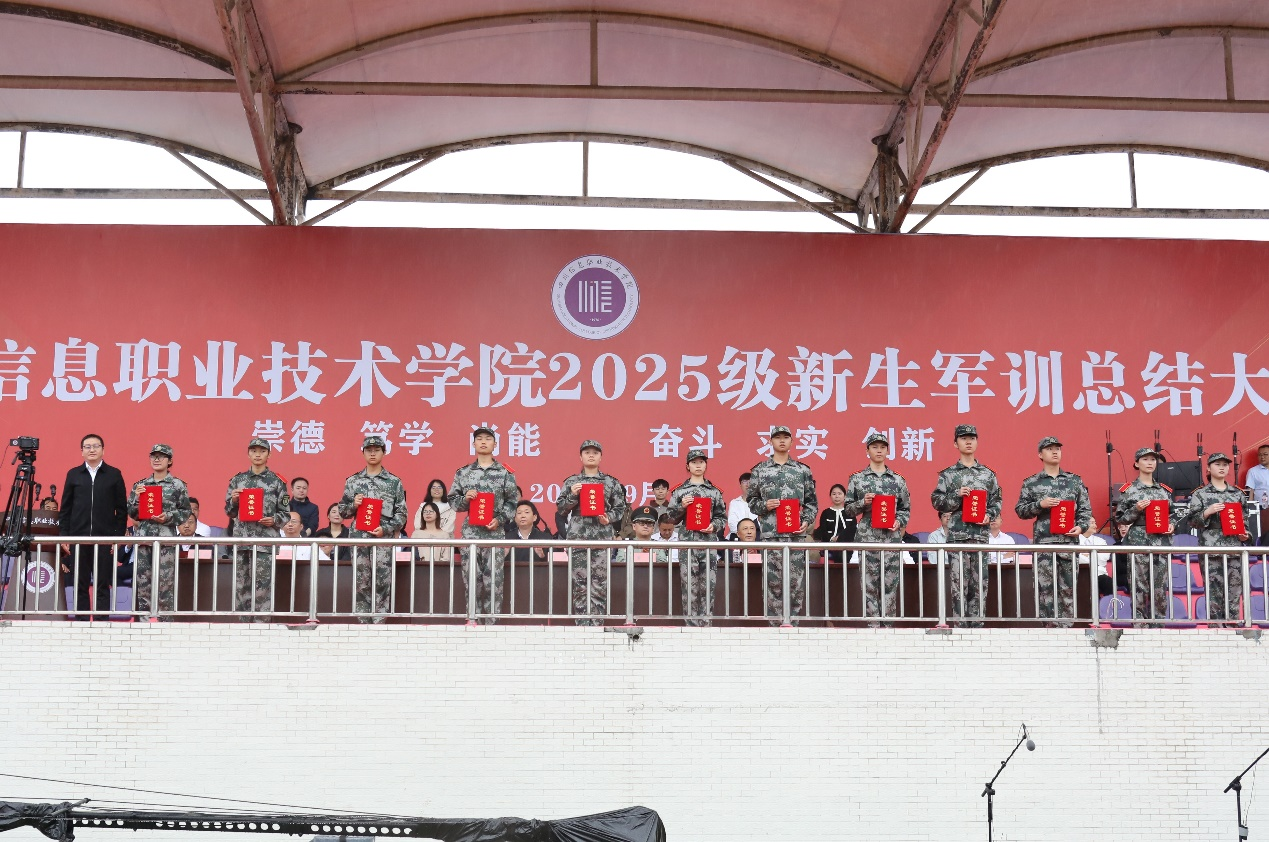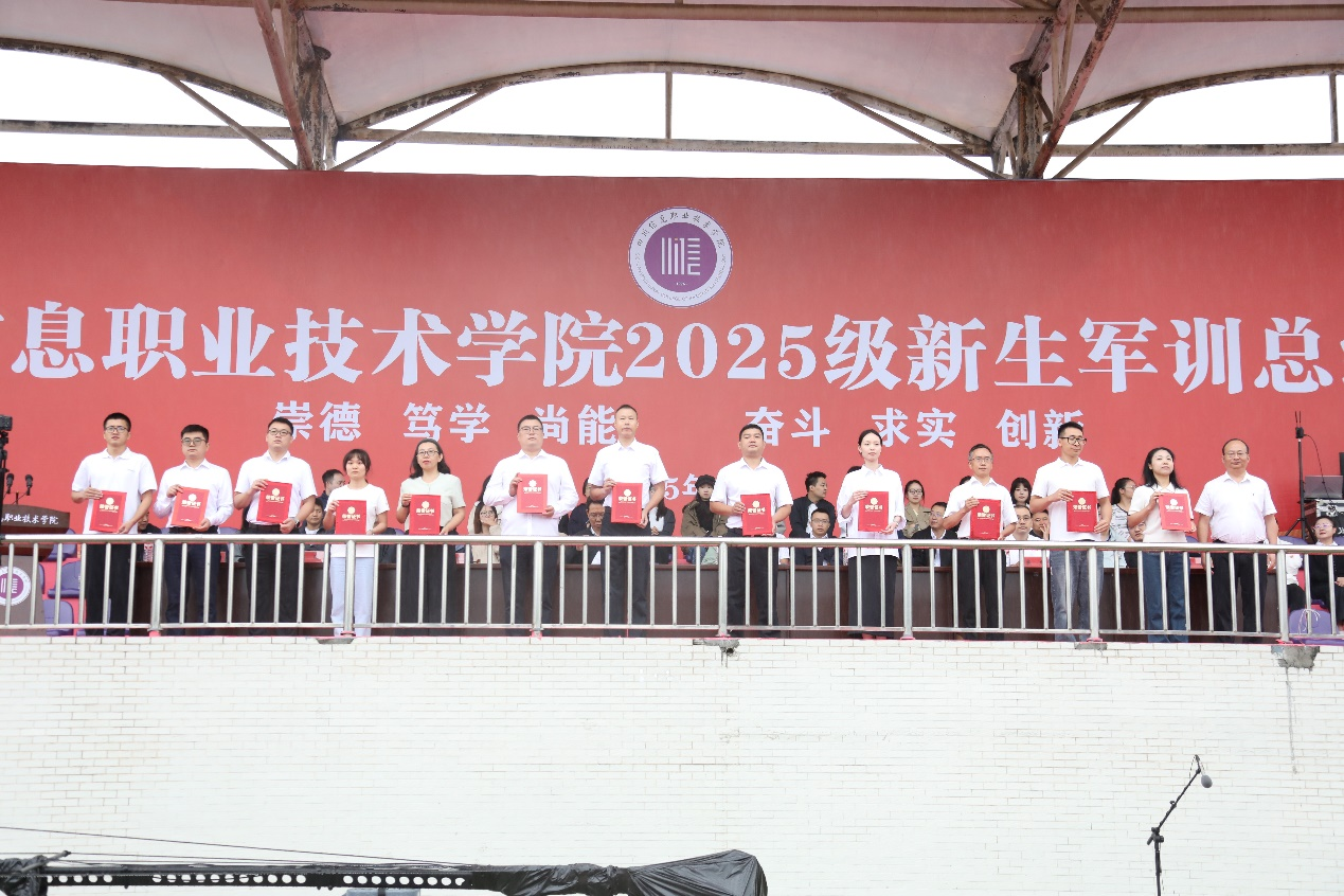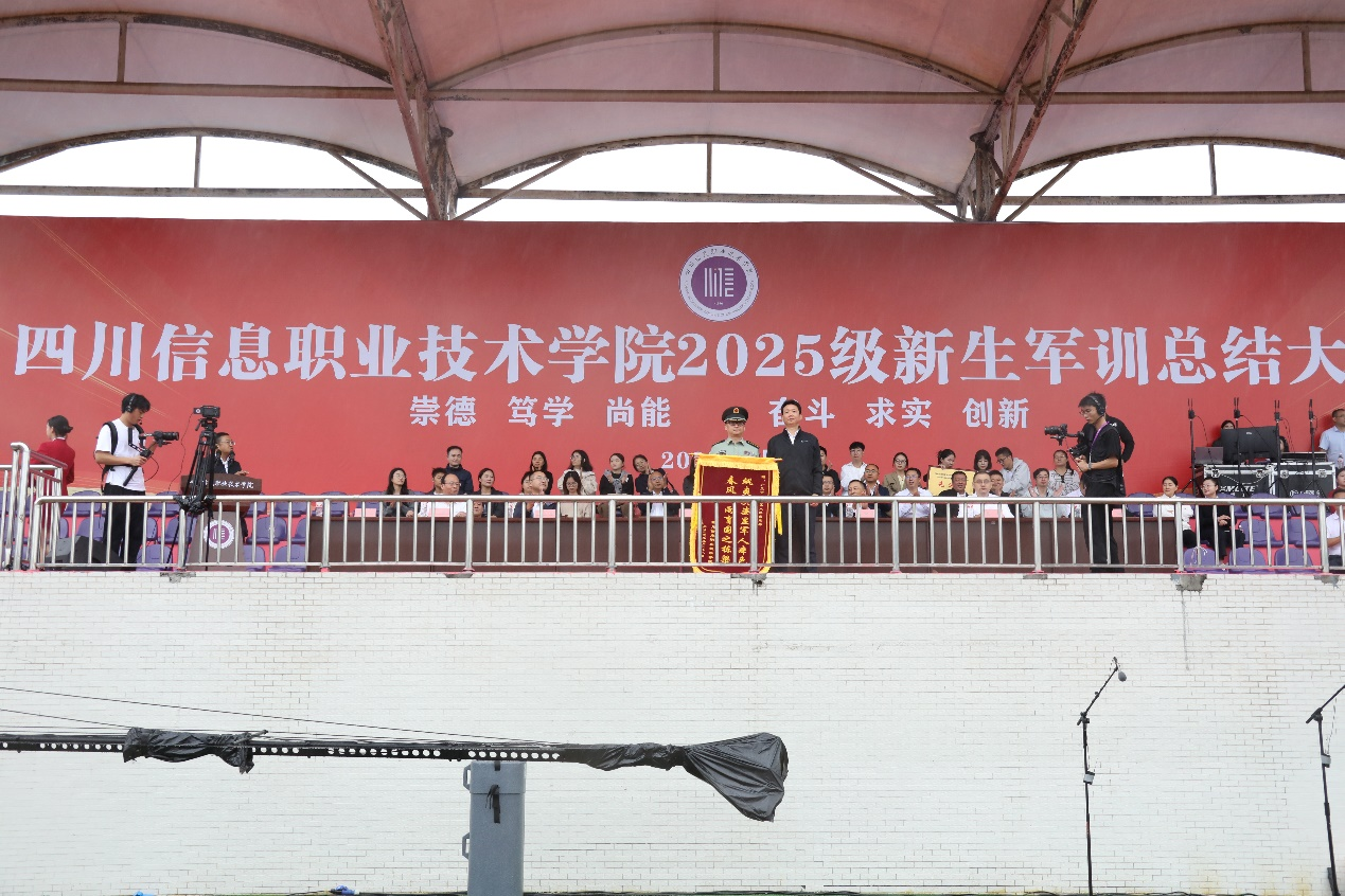 9月28日上午,学院2025级新生军训总结大会在雪峰校区田径场举行。学院党委副书记刘凯及在家院领导班子其他成员,广元市利州区人民武装部政委黄林,广元市教育局相关工作人员,学院职能处室、二级学院主要负责人、承训教官及2025级新生参加大会。会议由学院党委委员、副院长杨华明主持。