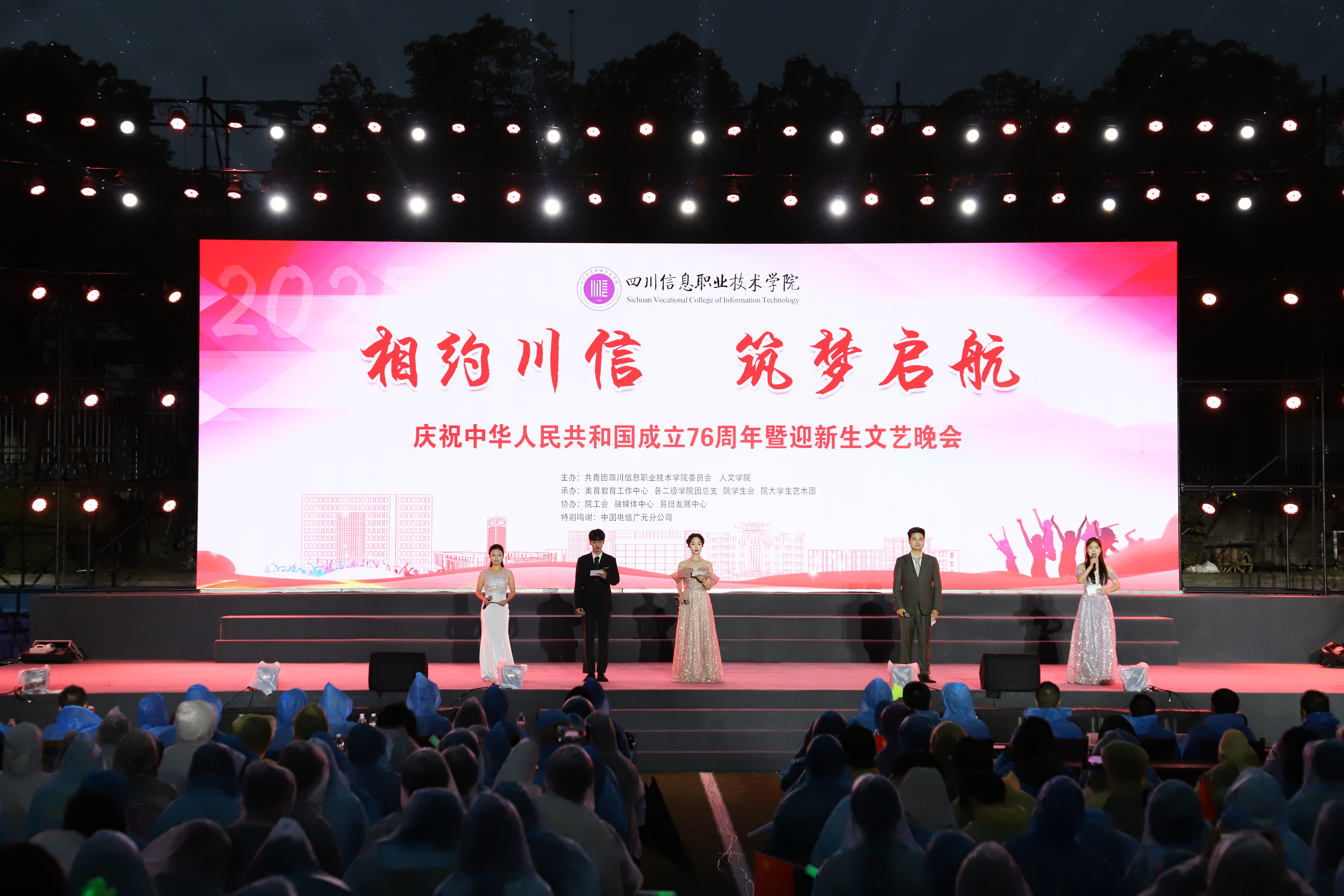 华灯绽放、欢声响彻,秋风送爽、丹桂飘香,9月28日晚,学院《相约川信 筑梦启航》——庆祝中华人民共和国成立76周年暨迎新生文艺晚会在雪峰校区田径场举行。党委副书记刘凯及在家党委领导班子其他成员,中国电信广元分公司党委委员、副总经理张家荀及校园客户中心副总经理何武,学院相关职能部门及各二级学院负责人、教职员工代表、全体2025级新同学和高年级学生代表近5000人参加晚会。