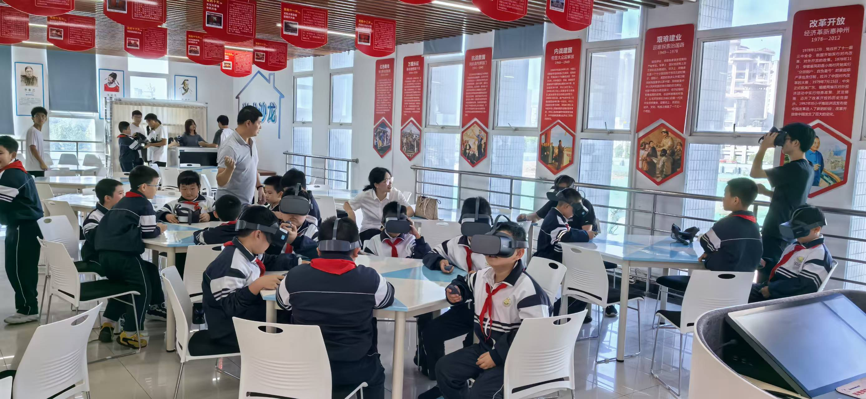 活动现场,在我院马克思主义学院教师的引导下,同学们通过VR技术体验“嘉陵江战役”历史场景,沉浸式感受革命岁月的艰辛与壮烈;在机械臂互动区,大学生志愿者们现场演示了机械臂书写功能,展示了自动化技术的实际应用;在VR观景环节,借助虚拟现实技术,雄伟的古代关楼、神秘的黑洞天体以及闪烁的萤火虫等场景依次呈现,现场气氛热烈。