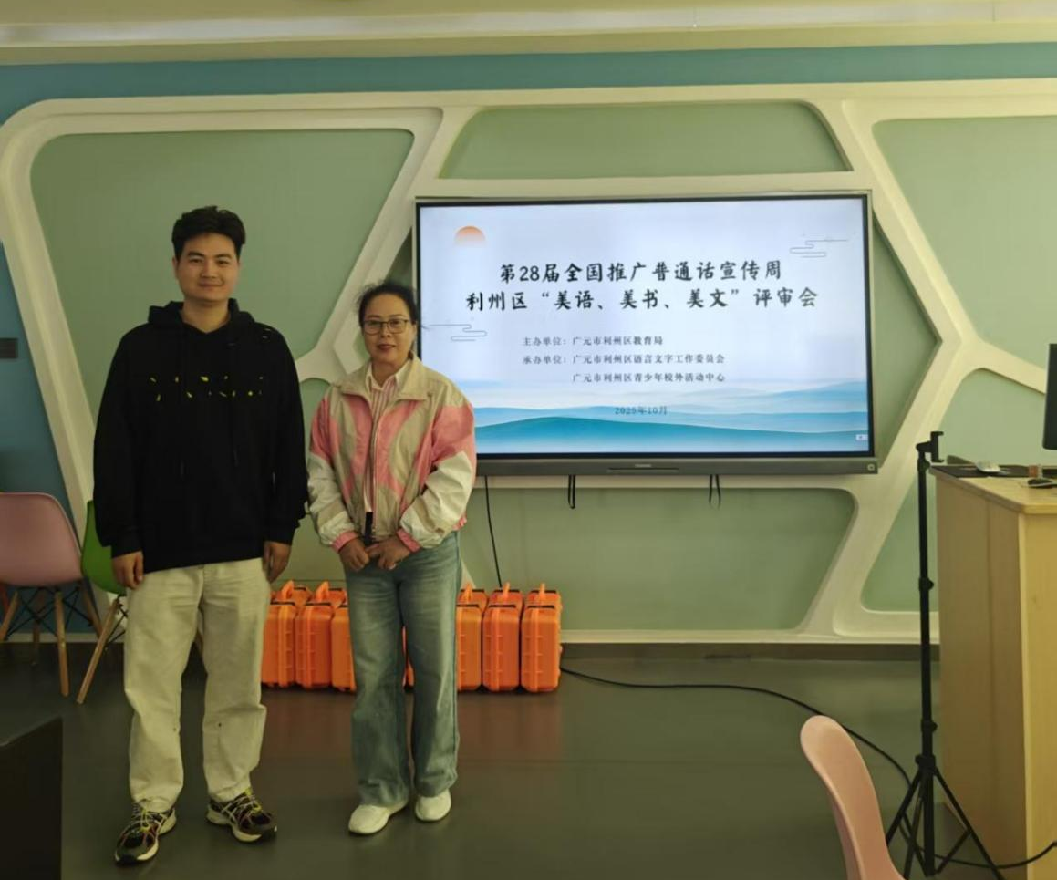10月20日,人文学院教师徐硕雁、陈盛被聘为第28届全国推广普通话宣传周利州区“美语、美书、美文”评审会专家。