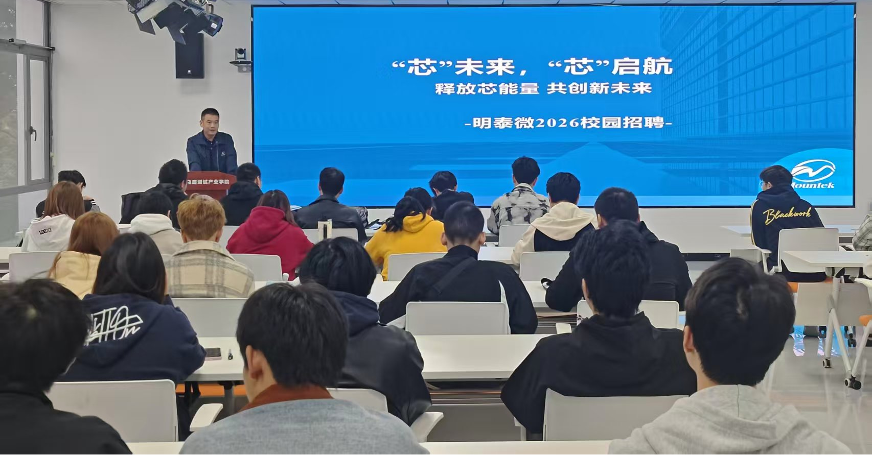 10月22日,四川明泰微电子有限公司在集成电路测试产业学院举行“芯”未来,“芯”启航专场招聘会,集成电路技术专业学生参加招聘会。