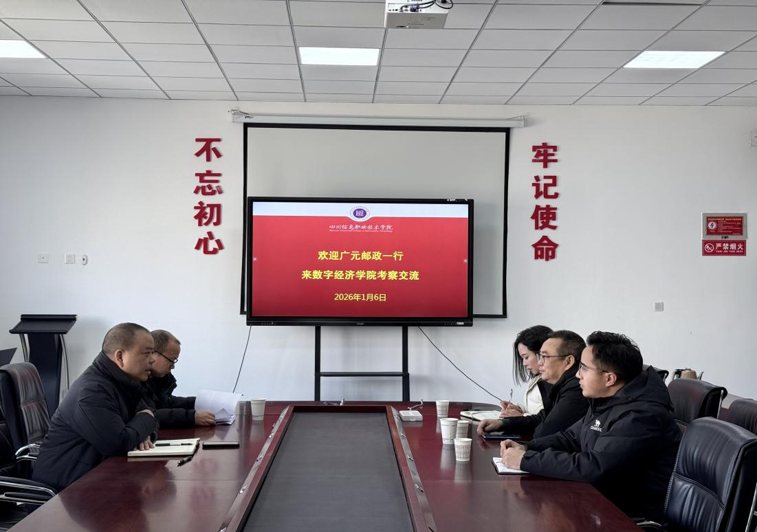 1月6日,中国邮政集团公司广元市分公司渠道平台部经理韩刚一行来院考察交流,数字经济学院副院长魏鼎热情接待了来宾,并在东坝校区5302会议室主持座谈会。该院相关负责人参加会议。
