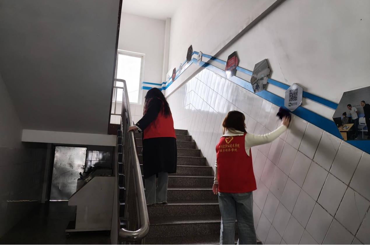 活动现场,志愿者们分工有序、协作密切,携带清洁工具前往预定责任区域,全面开展了环境卫生保洁工作。全体志愿者发扬不怕脏、不怕苦的劳动精神,认真捡拾停车场及周边的散落垃圾,细致清理楼道、扶手等公共区域的积尘与卫生死角,展现出高度的责任感和良好的团队协作风貌。