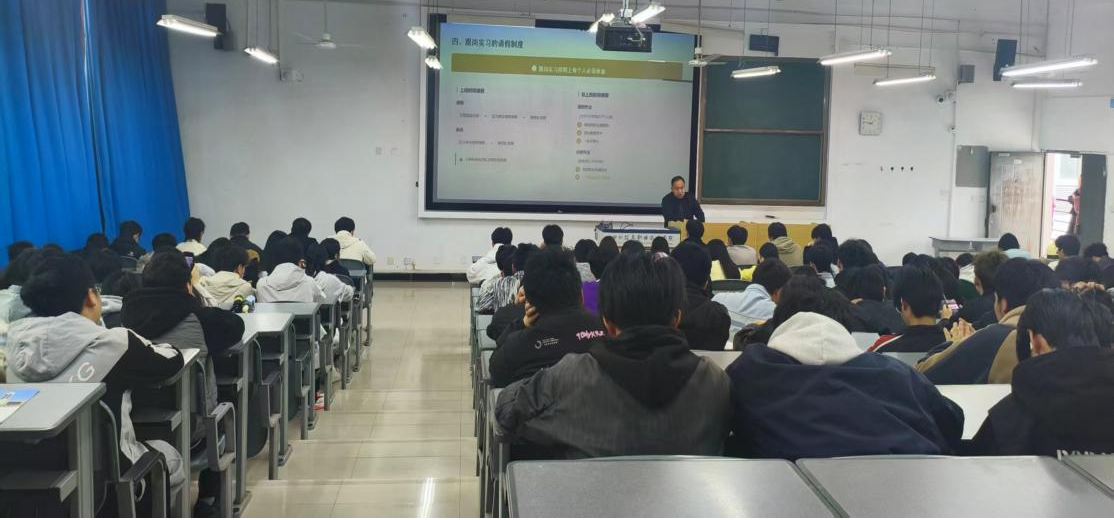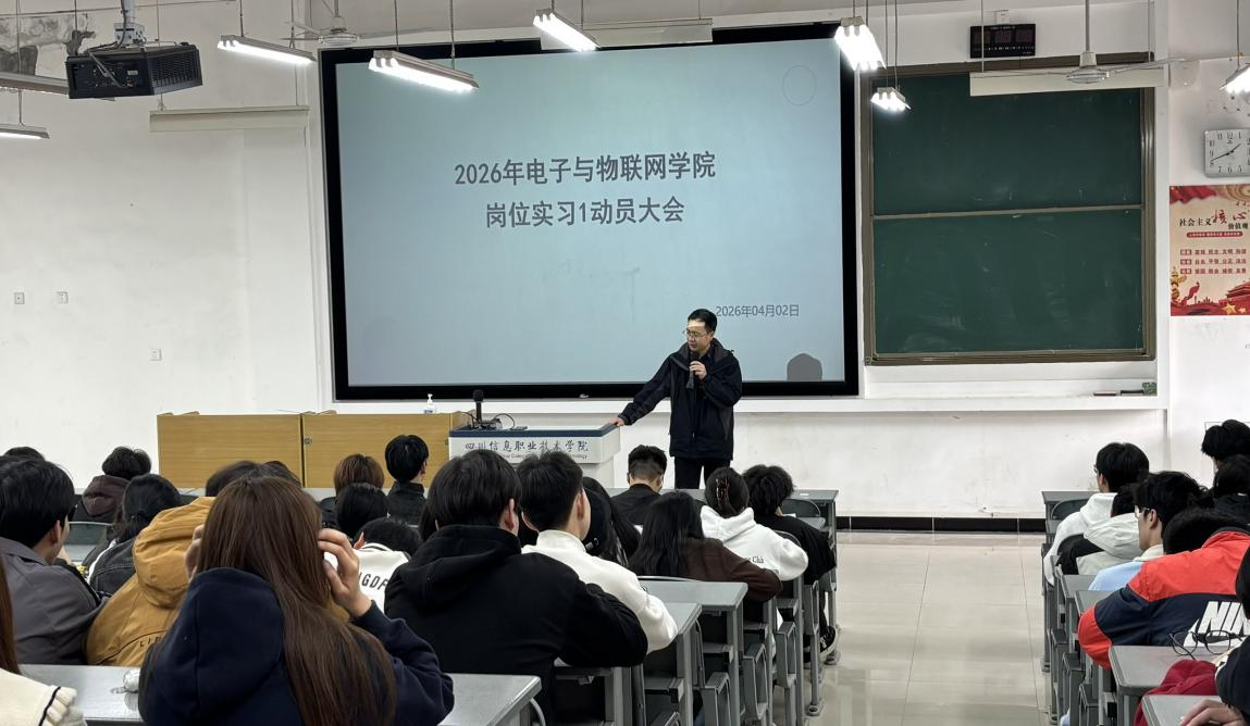 4月2日,电子与物联网学院在雪峰校区3308、4308教室召开四川长虹空调有限公司第二批生产实习动员大会。该院党总支书记张德忠、院长王坤分别作动员讲话,相关辅导员、带队教师及全体实习学生参加会议。