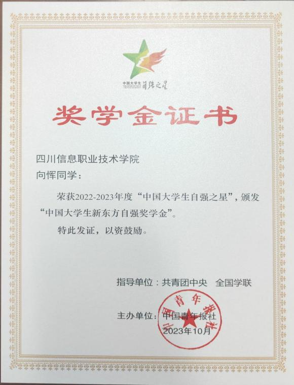 近日,中华全国学联公布了2022年度“中国大学生自强之星”奖学金获得者名单。经学院推荐、省级初评、全国评审等环节,电子与物联网学院向恽同学、网络与通信学院拉马德伟同学分别荣获“中国大学生自强之星”奋斗力行类和社区实践类奖学金。