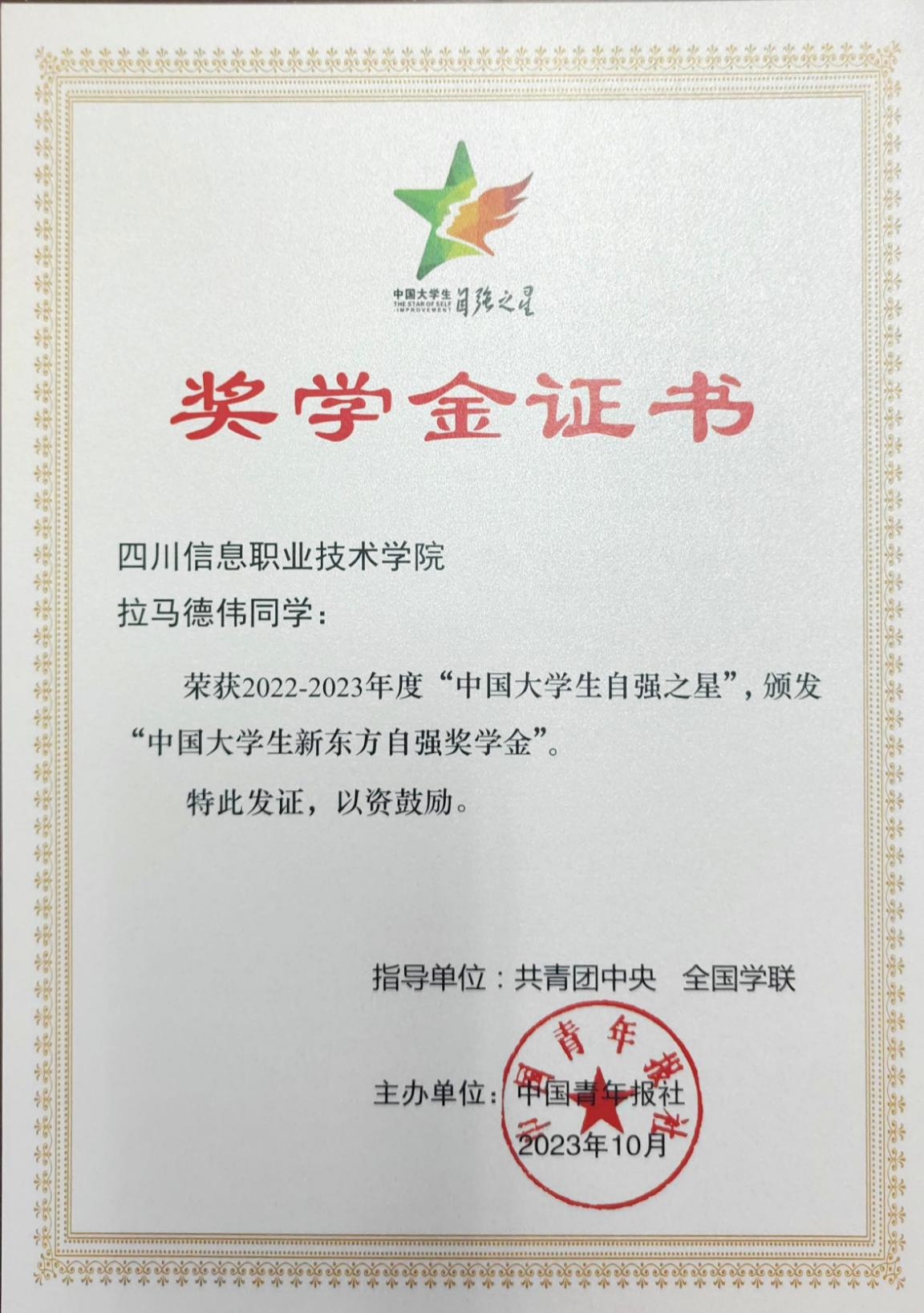 2022年度“中国大学生自强之星”奖学金推报活动由共青团中央、全国学联指导,中国青年报社、新东方教育科技集团、中国青年创业就业基金会联合举办。活动以“踔厉奋发 勇毅前行”为主题,旨在树立当代大学生中热爱祖国、品行优良、不畏艰难、自强不息的榜样。