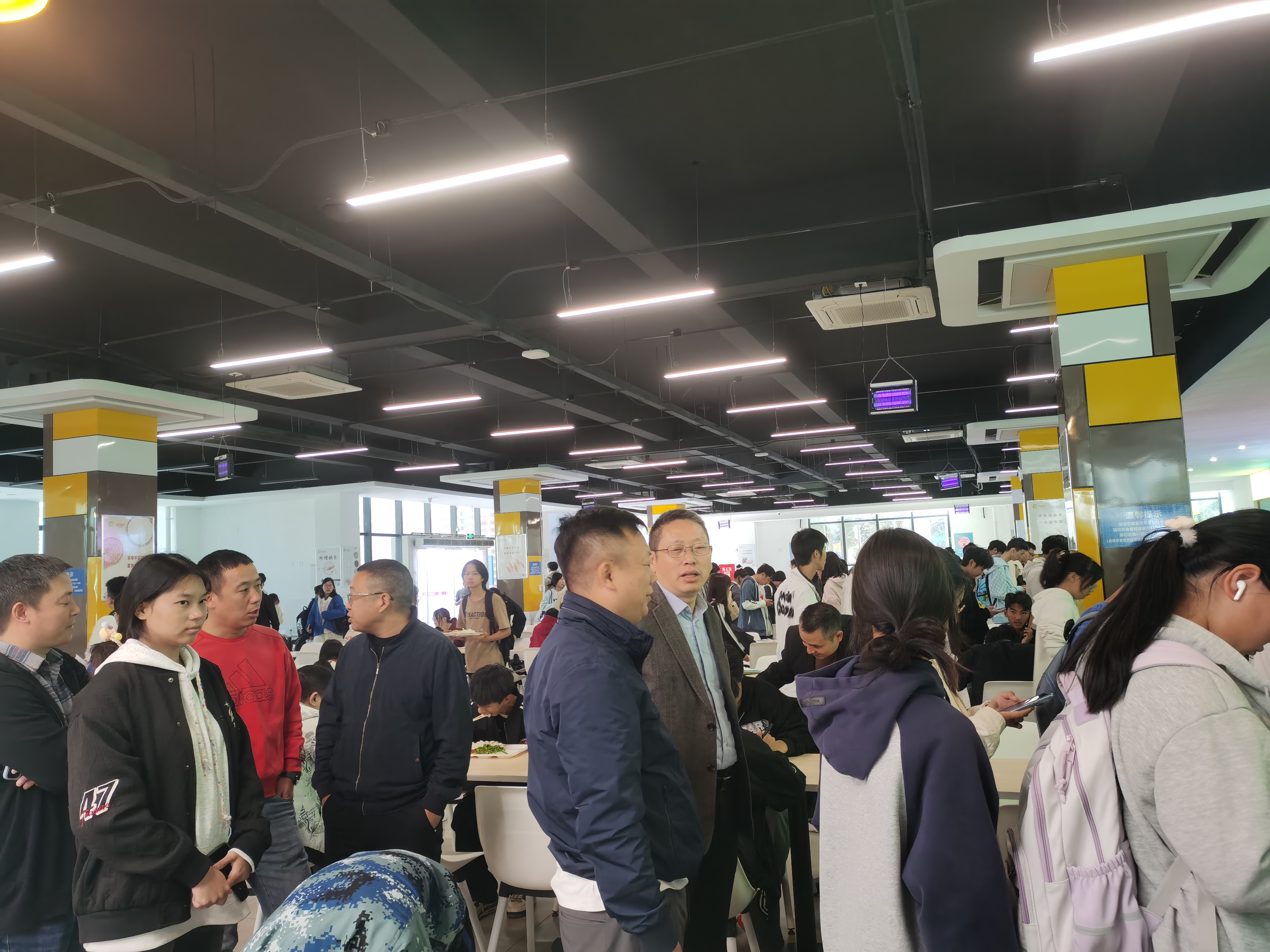 10月22日,院长韩鹏深入雪峰校区学生食堂调研,对饭菜供应及学生就餐等情况进行检查,并与学生共进午餐。院长助理杨华明、有关职能部门相关负责人陪同调研。