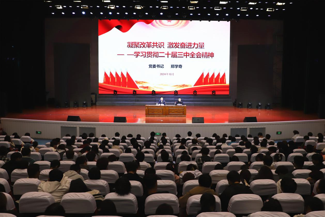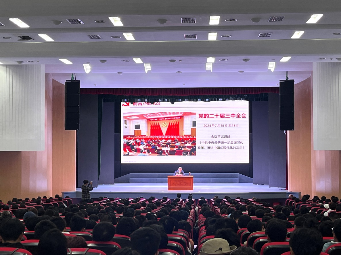 为深入学习宣传贯彻党的二十届三中全会精神,全面落实教育部办公厅关于“学习贯彻党的二十届三中全会精神”教学要点的要求,10月24日下午,党委书记郑学奇、院长韩鹏分别在雪峰、东坝校区为1500名学生代表作形势与政策专题辅导报告。