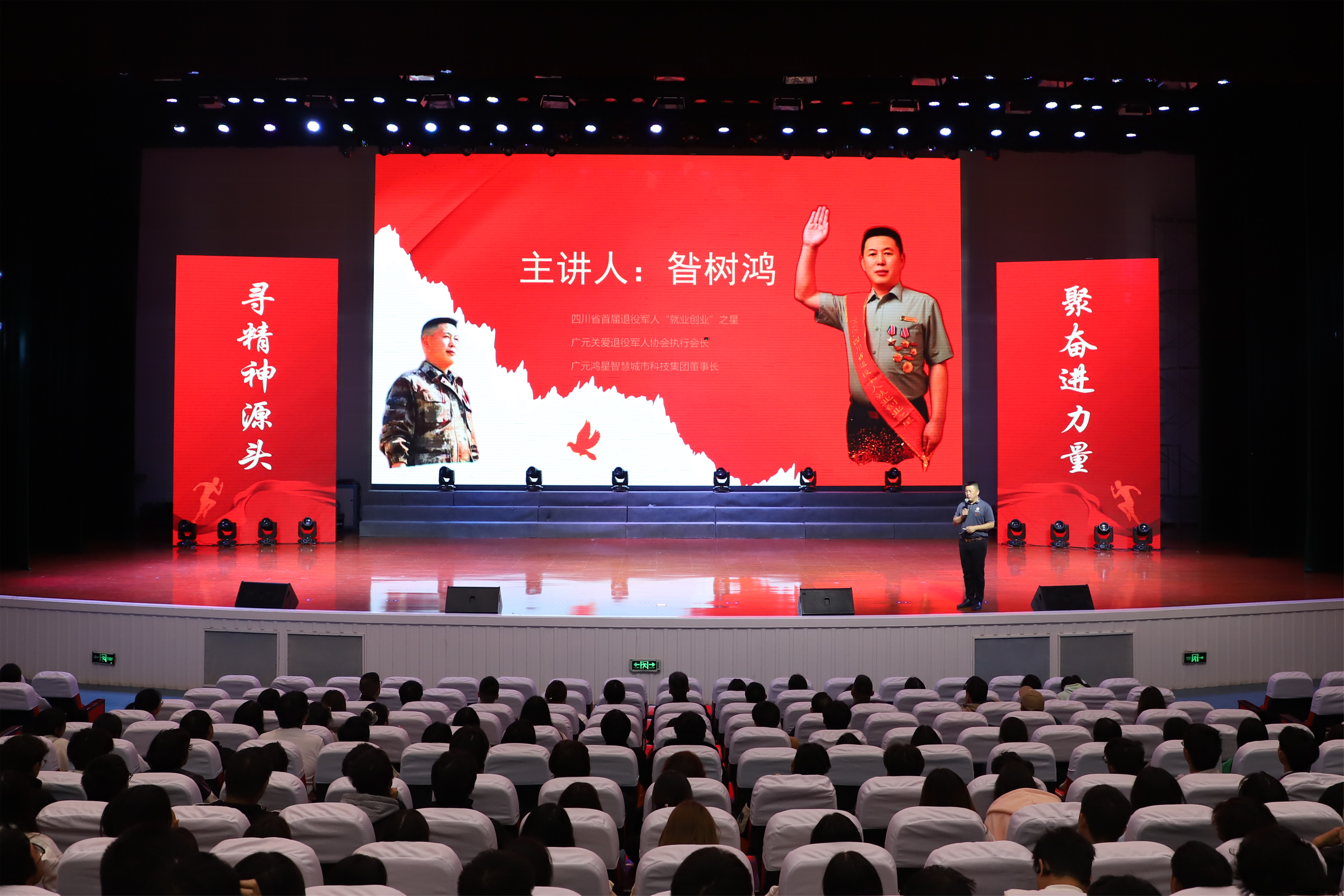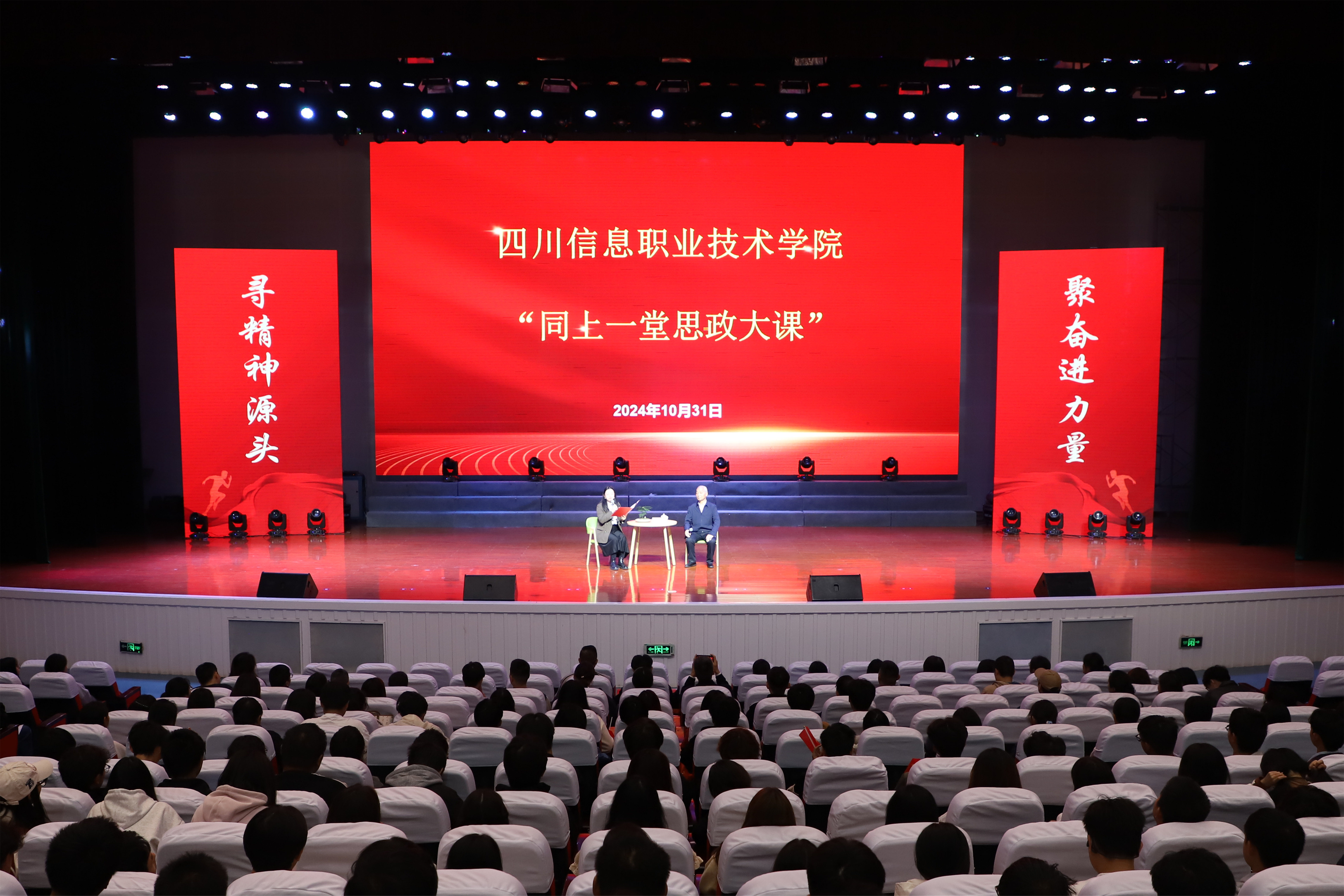 为深入学习贯彻党的二十届三中全会精神,弘扬中国共产党精神谱系,推动新时代学校思政课建设内涵式发展,10月31日下午,由党委宣传统战部主办、马克思主义学院承办的“同上一堂思政大课”活动在雪峰校区学术交流中心演艺厅举行。本次活动以“寻精神源头 聚奋进力量”为主题,特邀两弹结合试验亲历者、2017年度“感动绵阳”十大人物赵符修教授和四川省首届退役军人“就业创业”之星、广元关爱退役军人协会执行会长、广元鸿星智慧城市科技集团董事长昝树鸿来院授课,600余名师生代表参加活动。