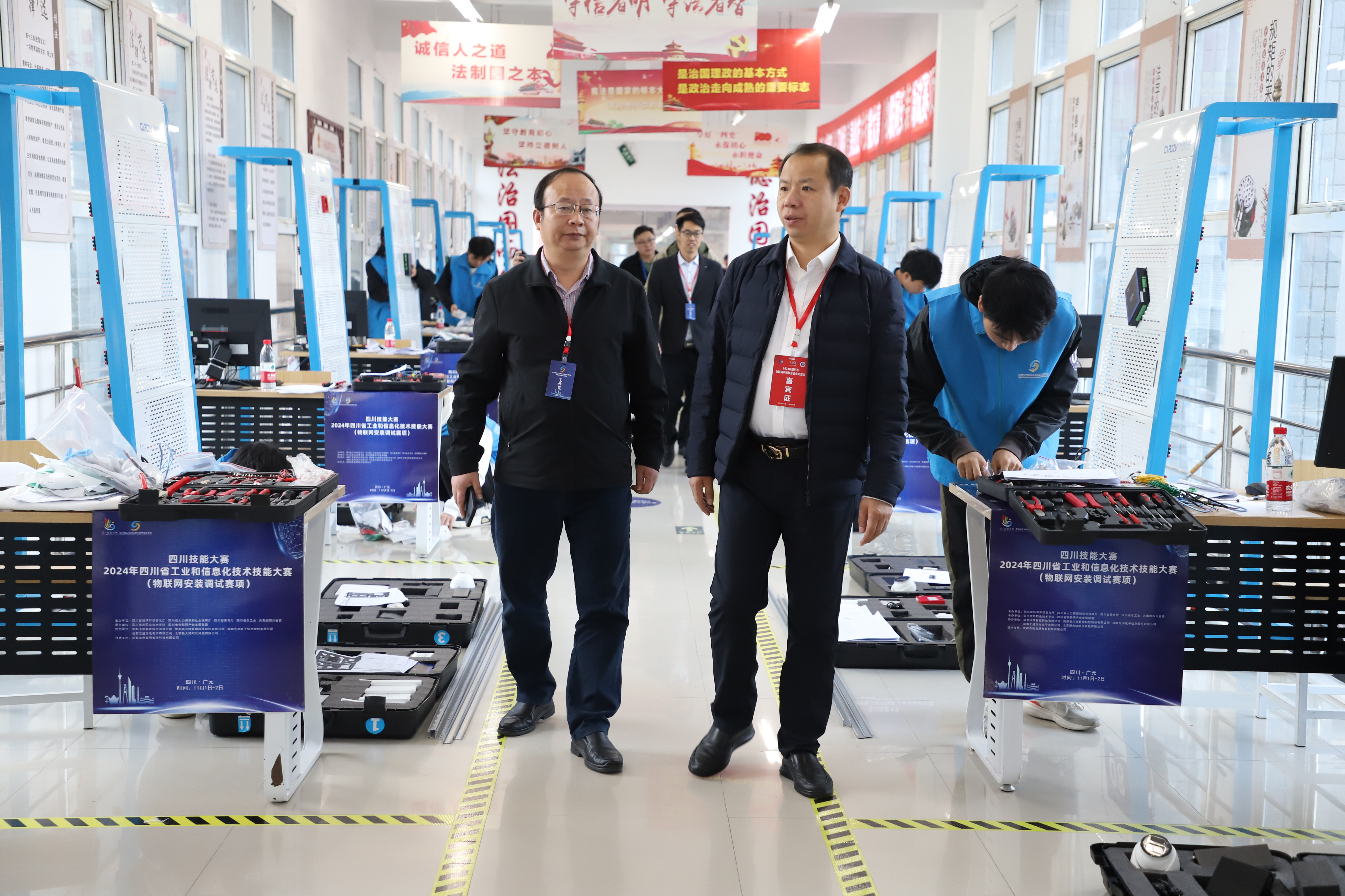 比赛期间,四川省经济和信息化厅宣传教育处一级调研员聂长兵,学院党委委员、副院长吕强巡视了比赛现场。