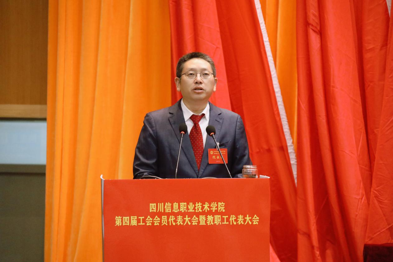 郑学奇在致辞中代表学院党委向大会的召开表示热烈祝贺,向四川省经济和信息化工会委员会、中国教育工会广元市委员会长期以来对学院工会工作给予的大力支持表示衷心的感谢,并向全体教职员工致以亲切的问候和崇高的敬意。他对第三届工会会员代表大会及教职工代表大会召开以来,学院事业发展及工会工作所取得的成绩予以了充分肯定。最后,他希望全体教职工要以“机不可失、时不再来”的紧迫感和责任感,紧紧抓住双重机遇叠加的发展黄金期,在千帆竞发的“双高”建设征途中拉开攻坚必胜的架势、掀起大干快上的声势、拿出舍我其谁的气势,弘扬和践行教育家精神,勤勉敬业、奋楫争先,在奋力实现职教本科远景目标征程中奏响劳动光荣、创造伟大的时代强音。