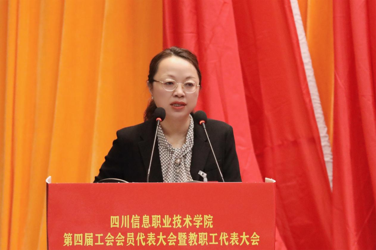 李莉勤向大会作了题为《坚定方向 凝聚力量 为实现建设高水平高职院校而砥砺奋进》的第三届工会工作报告。报告从提高政治站位、思想政治引领功能充分彰显,围绕中心大局、服务学院改革发展坚定有力,加加强民主管理、民主和谐校园建设持续推进,竭诚服务教职工、为民送温暖办好事彰显温度,加强工会自身建设、工作机制更加规范有序等方面对学院第三届工会工作作了全面的总结;并从突出思想引领、凝聚发展共识,突出服务中心、激励岗位建功,突出民主管理、保障职工权益,突出关心关爱、顺应职工期待,突出内涵建设、提升工作水平等方面提出了未来五年学院工会工作的思路和主要任务。报告最后指出,学院工会在未来的工作中要始终坚定正确的政治方向,把全心全意服务教职工作为所有工作的出发点和落脚点,以改革的勇气和进取的精神不断探索创新,团结和引领广大教职工踔厉奋发、团结奋斗,为全面实现学院第三次党员大会绘就的发展蓝图贡献全部的智慧和力量!