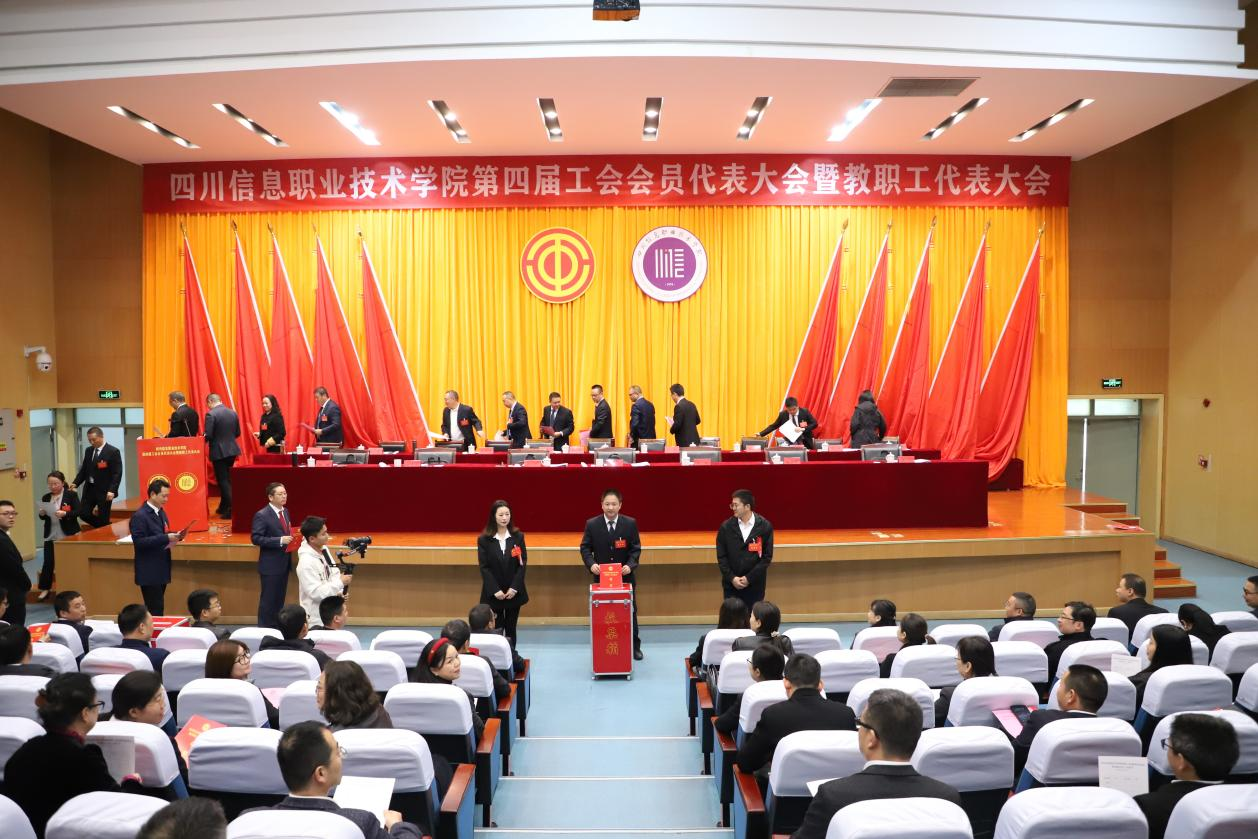 11月7日,学院第四届工会会员代表大会暨教职工代表大会在雪峰校区学术交流中心报告厅隆重召开。党委书记郑学奇,党委副书记、院长韩鹏,四川省经济和信息化厅机关工会一级调研员夏军,广元市委教育工委委员,广元市教育局党组成员、副局长杨元,四川省经济和信息化厅机关工会三级调研员、四川省经济和信息化工会委员会综合部部长邓志超,四川省经济和信息化工会委员会基层保障部部长黄蔚,广元市教育工会副主席张莉,学院领导班子其他成员及来自学院各岗位的正式代表和列席代表参加会议。大会由第三届工会委员会主席李莉勤主持。