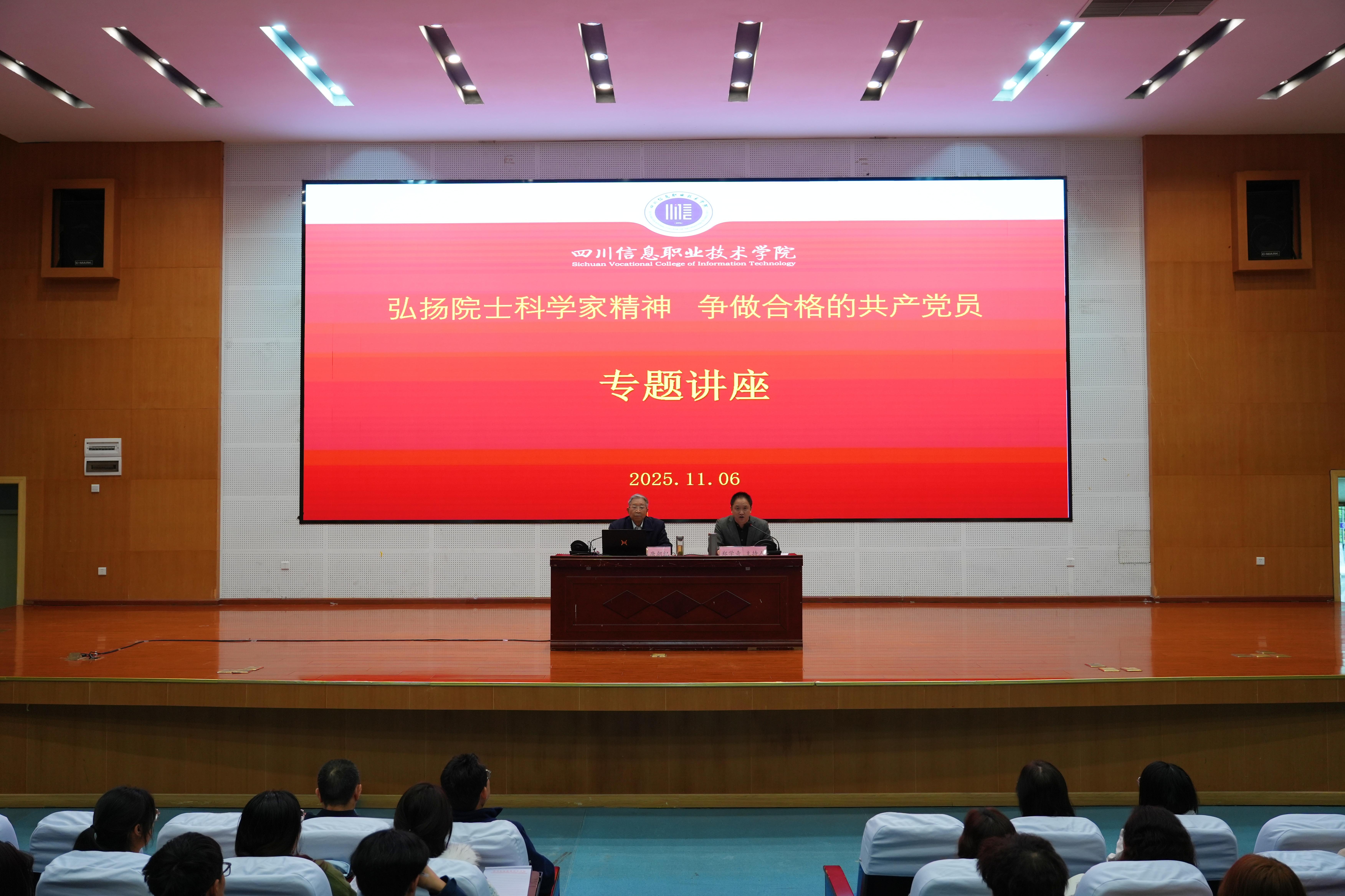 11月6日,四川省关工委、省教育厅关工委“五老”宣讲团成员,省委教育工委原副书记、教育厅原副厅长唐朝纪来院开展专题讲座。学院党委书记郑学奇主持讲座,党委副书记刘凯,广元市关工委办公室主任冉萍、“五老”宣讲团团长朱福全、办公室干部齐琪,利州区关工委办公室副主任王全胜,学院党委组织部、党委学生工作部、关工委、团委、工会等职能部门负责人,全体团委委员,第41期党校入党积极分子培训班、“青马班”全体成员以及各二级学院青年师生代表共300余人到场聆听讲座。