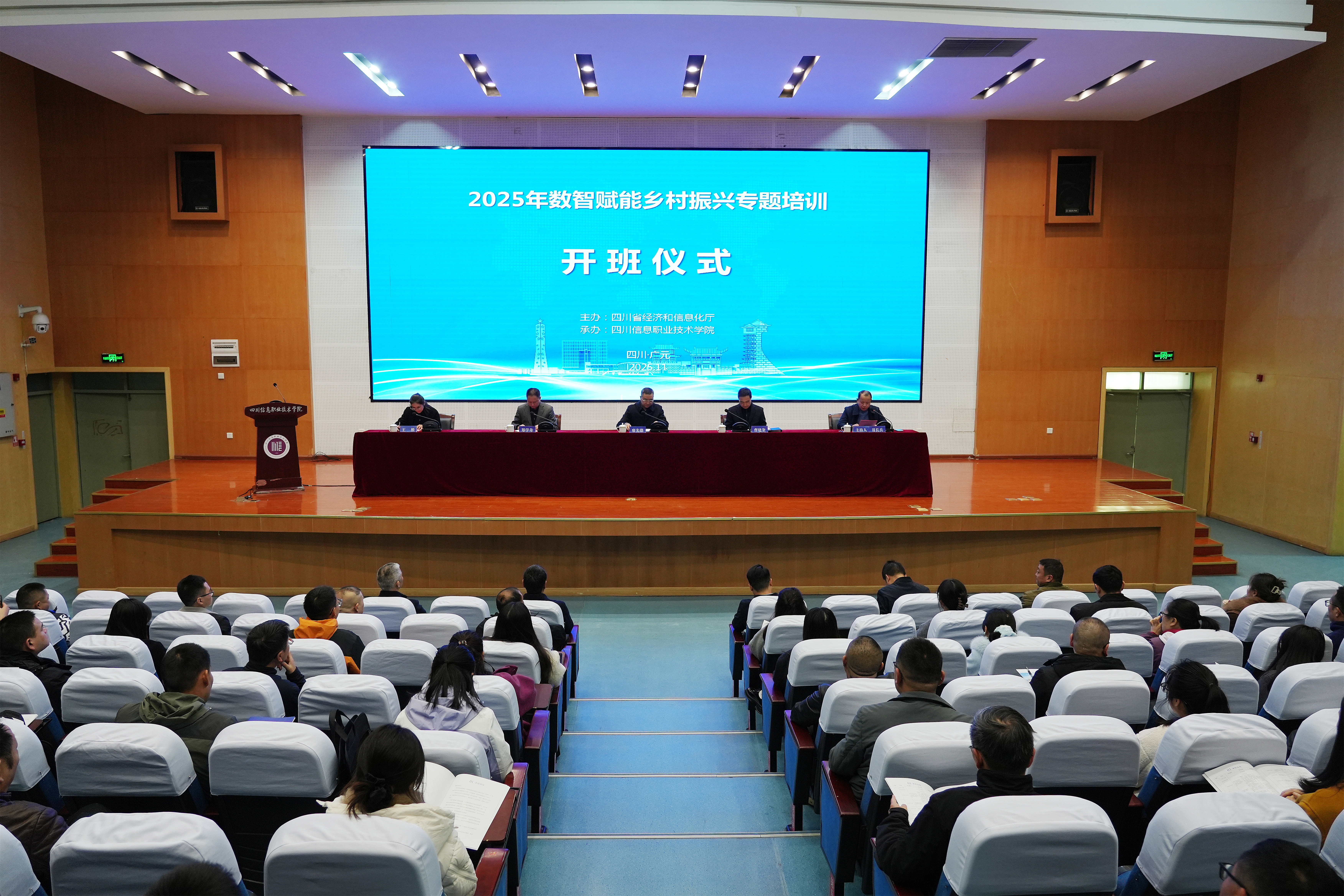 11月18日上午,由四川省经济和信息化厅主办、学院承办的2025年数智赋能乡村振兴专题培训班在雪峰校区学术交流中心报告厅开班。省经济和信息化厅二级巡视员廖先德,广元市委常委、政法委书记曹建奎,学院党委书记郑学奇出席开班仪式,省经济和信息化厅相关处(室)负责人、广元市经济和信息化局及其他市(州)经信系统干部、重点涉农企业管理人员等100余人参加开班仪式。开班仪式由省经济和信息化厅宣传教育处一级调研员聂长兵主持。