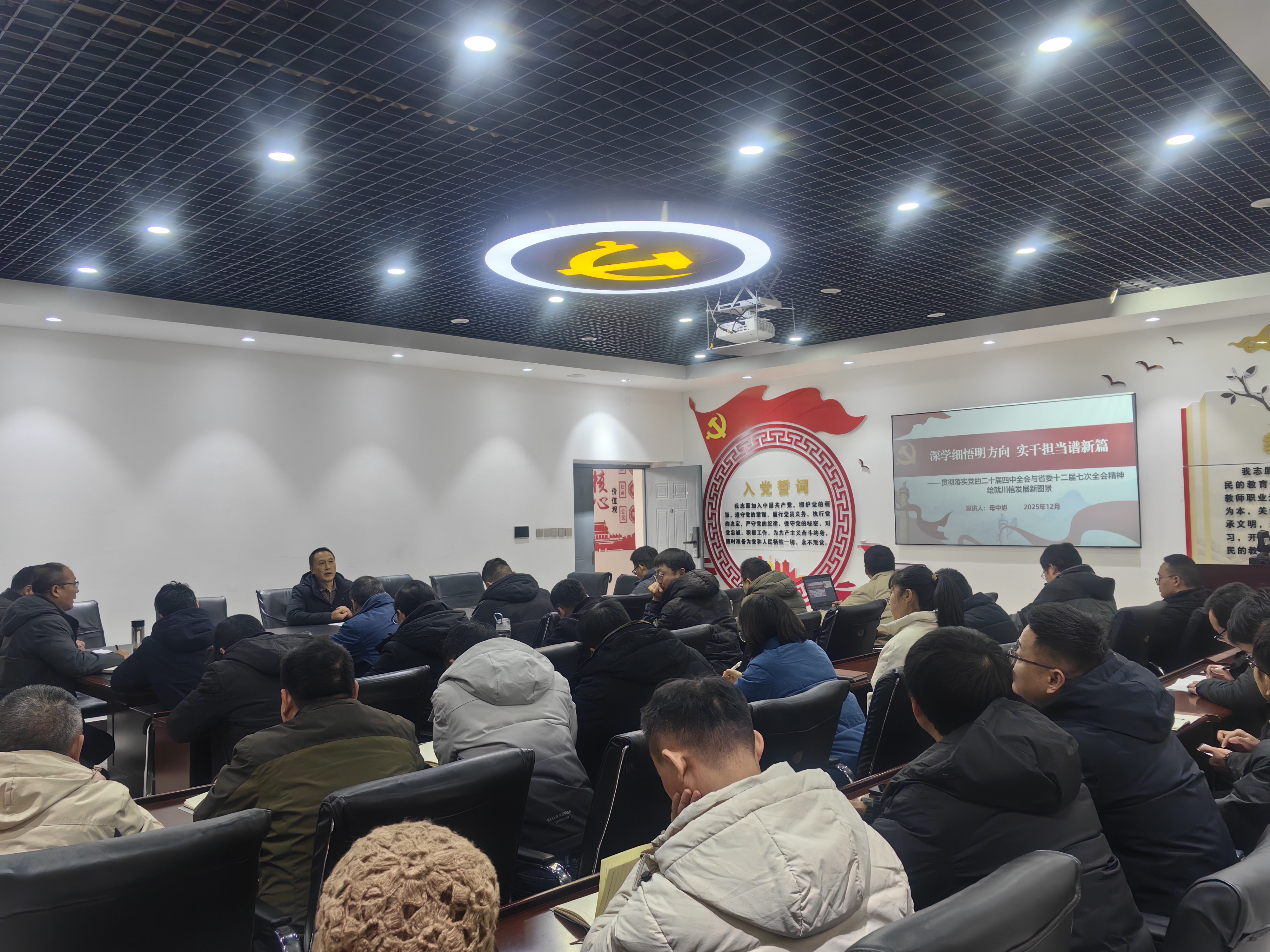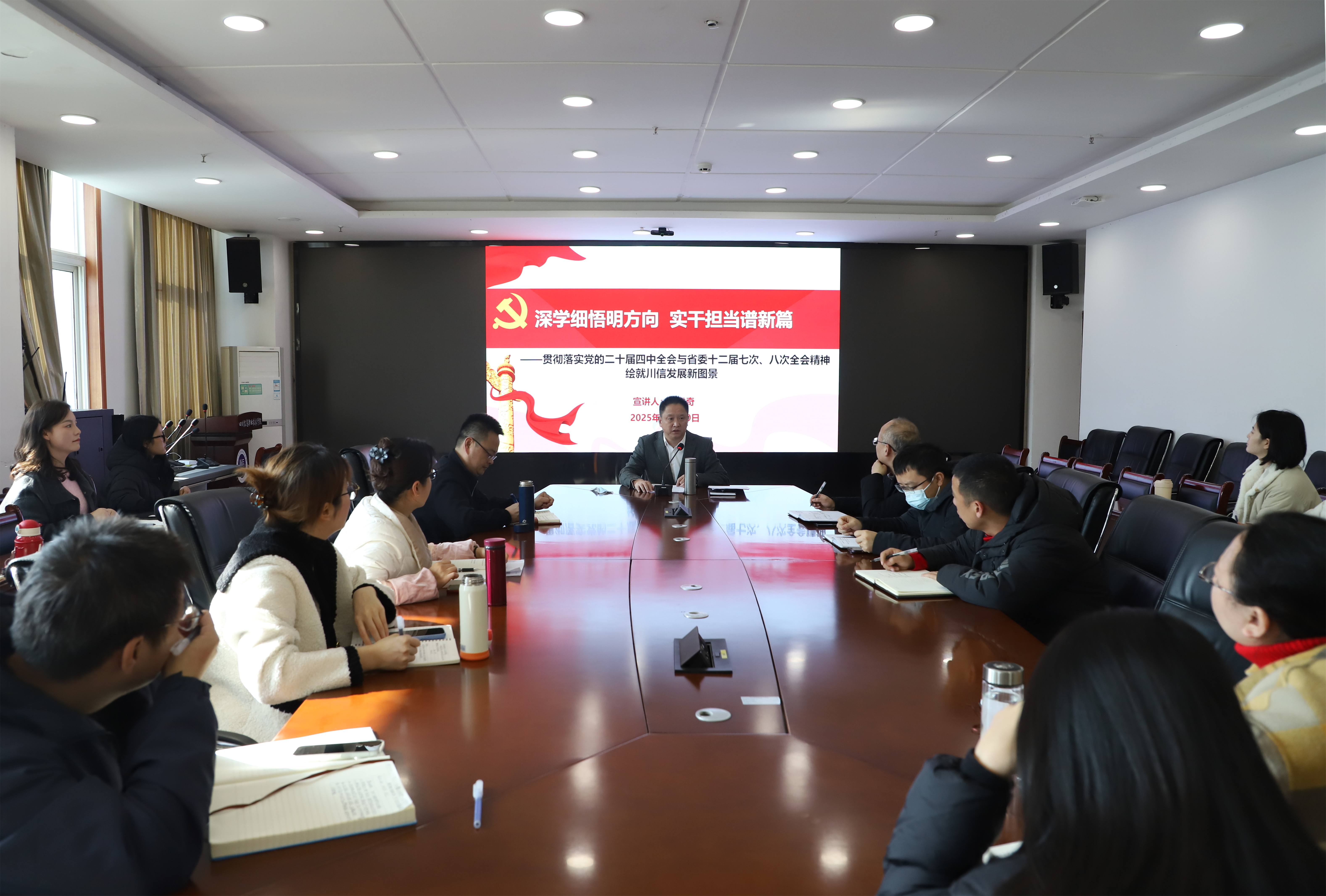 为深入学习宣传贯彻党的二十届四中全会精神,连日来,以党委书记郑学奇、院长韩鹏及学院其他领导班子为主要成员的“川信宣讲团”深入基层对全会精神进行系统宣讲和深入阐释。截止12月18日,共开展了7场宣讲活动,聆听宣讲的师生人数逾500人。