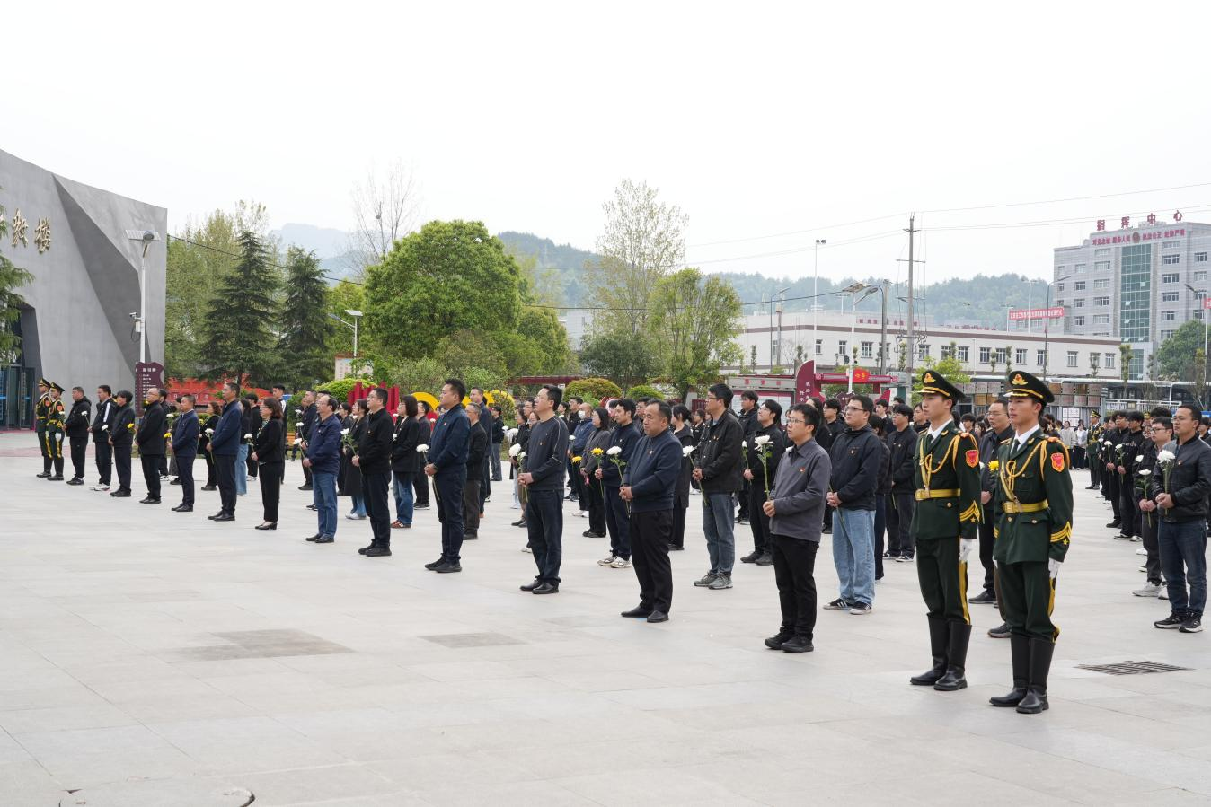 向烈士默哀并行鞠躬礼
