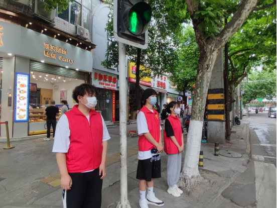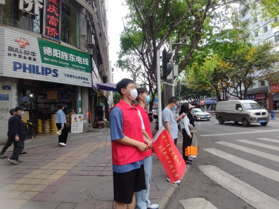 创建全国文明城市,共享美好幸福生活。4月27日,智能控制学院青协分队在嘉陵街道下河街社区财神街路口处开展文明交通劝导志愿服务活动。