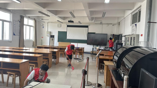 活动中,志愿者们以饱满的热情和认真的态度,对电子楼进行了全面的清洁工作。经过3个小时的辛勤劳动,整栋教学楼焕然一新。