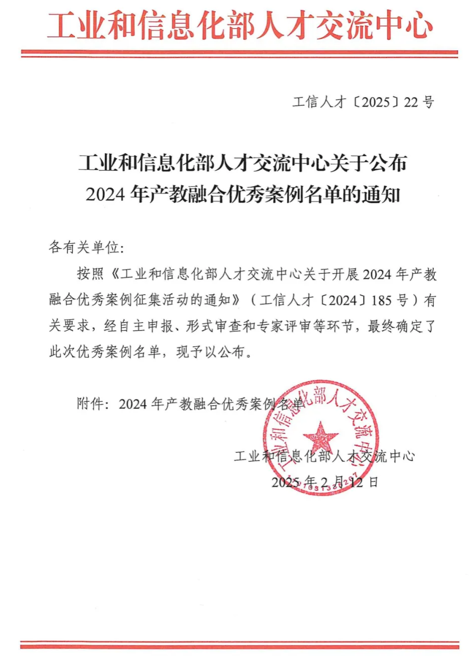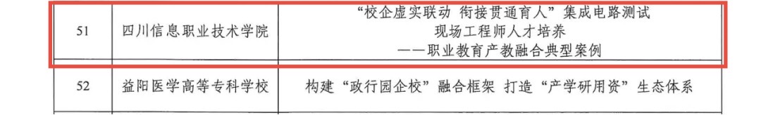 2月12日,工业和信息化部人才交流中心公布了2024年产教融合优秀案例遴选结果,四川省仅3所学校入选,我院电子与物联网学院的“校企虚实联动,衔接贯通育人”集成电路测试现场工程师人才培养——职业教育产教融合典型案例”成功入选。