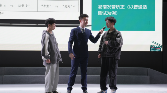 讲座中,冯宣从国家政策解读、当代大学生的朗诵艺术、朗诵核心技巧以及朗诵情感的调动与传递等九大方面,带领大家学习朗诵的核心要点,并亲自示范正确发音方式,现场互动频繁,气氛热烈。