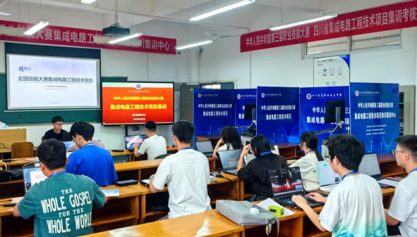 为全力备战中华人民共和国第三届职业技能大赛,电子与物联网学院作为集成电路工程技术(国赛精选)四川集训中心,于5月7日在雪峰校区开展了为期3天的集中训练。此次集训,学院依托集成电路技术专业优势,组建了一支由行业专家、院校骨干教师构成的教练团队。同时,还特邀广州慧谷动力科技有限公司的工程师来院进行集训技术支持,并开放高精度实训设备为选手提供实战支持。