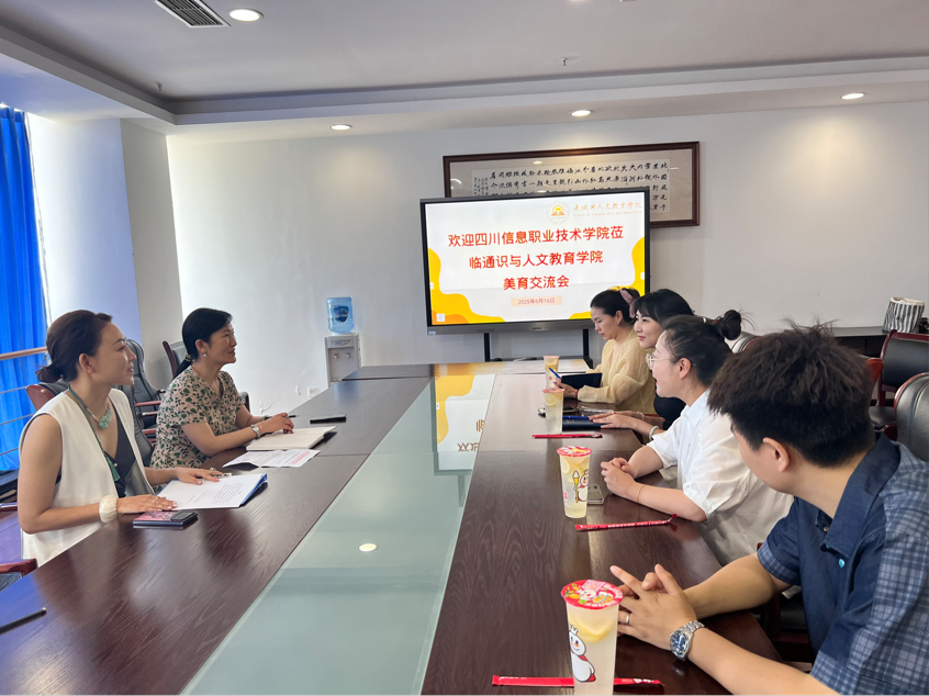 6月16日,人文学院(国际教育中心)副院长杨晓英带领美育教育工作中心教师一行5人,赴四川财经职业学院开展美育专题学习交流活动。