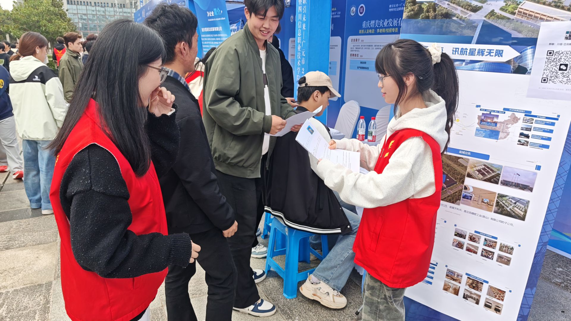 活动现场,电子与物联网学院组织由学生党员和青年志愿者组成的就业服务队,积极开展暖心志愿服务。志愿者们不仅协助维持秩序、解答咨询,还主动发放《就业政策与求职指南》宣传单,为毕业生提供及时实用的信息参考。