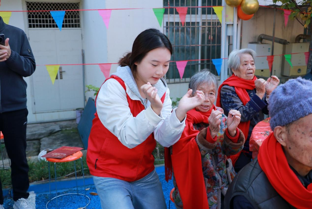 活动现场,志愿者们带来了经典老歌联唱和舞蹈表演,精彩纷呈的节目将气氛推向高潮,赢得了老人们的阵阵掌声。在互动环节,志愿者们特别设计了“健康手指操”教学,他们走到老人身边,逐一示范、耐心讲解,鼓励老人跟随练习,现场气氛温馨热烈。