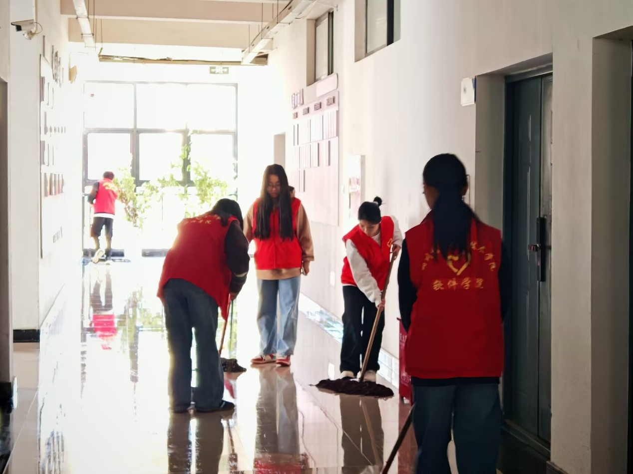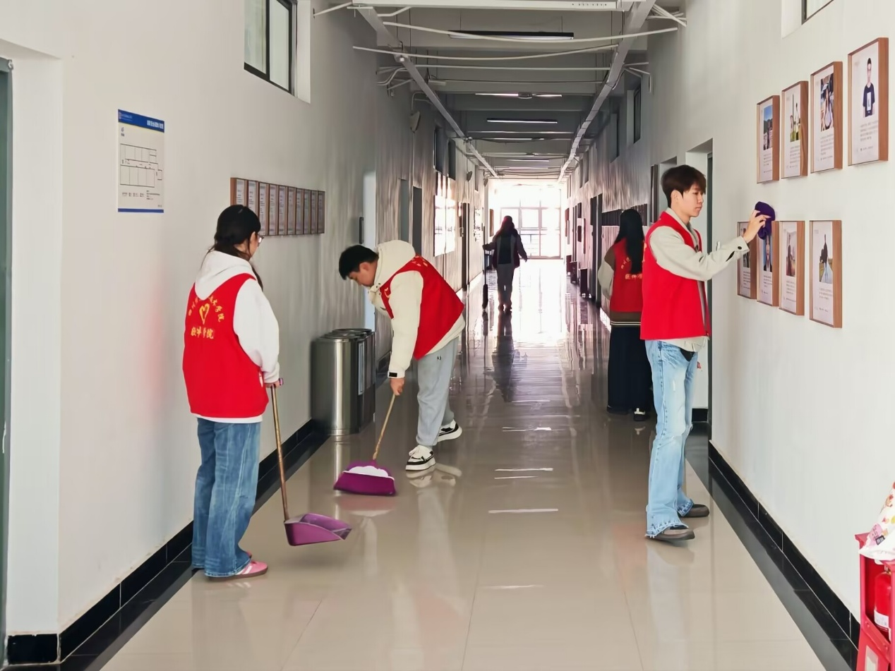 活动现场,志愿者们分工明确、配合默契,手持清洁工具,以“地毯式”清洁的方式,对各卫生死角进行了集中清理,展现出青年学子团结协作、乐于奉献的良好精神风貌。经过同学们的辛勤劳动,环境卫生状况得到了显著改善,公共区域面貌焕然一新,为师生创造了更加整洁有序的学习生活环境。