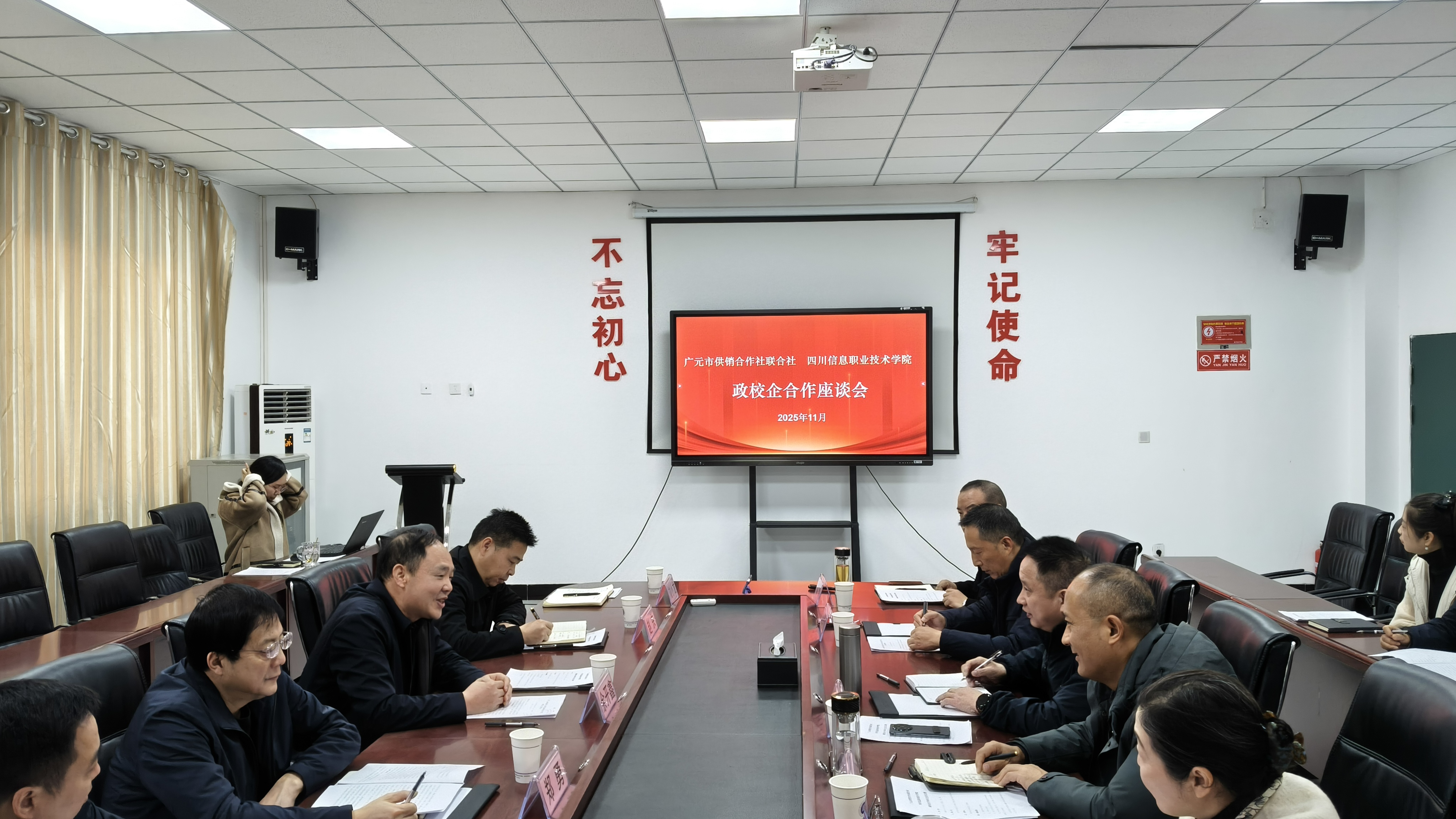 11月18日下午,广元市供销合作社联合社党组书记、主任余开鑫一行7人来院开展政校企合作交流,并在东坝校区5302会议室参加座谈会。学院党委书记郑学奇,党委委员、副院长母中旭,数字经济学院相关负责人参加座谈。