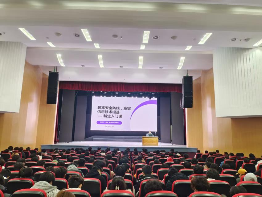 12月11日,现代制造学院邀请数据与信息化处处长胡钢在东坝校区大礼堂作“筑牢安全防线,夯实信息技术根基”专题讲座,该院全体2025级大一新生聆听讲座。
