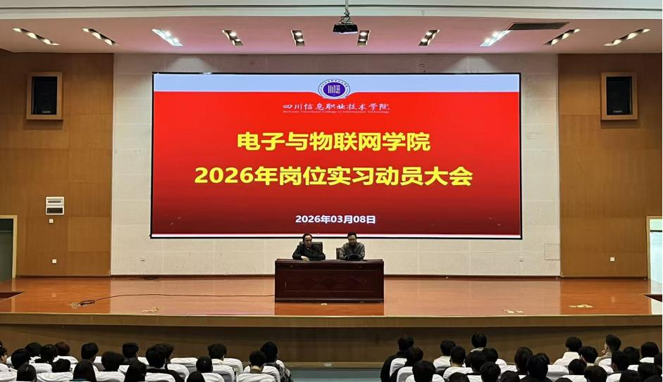 3月8日,电子与物联网学院召开2026年岗位实习动员会,全体实习学生及相关辅导员、带队老师参加会议。